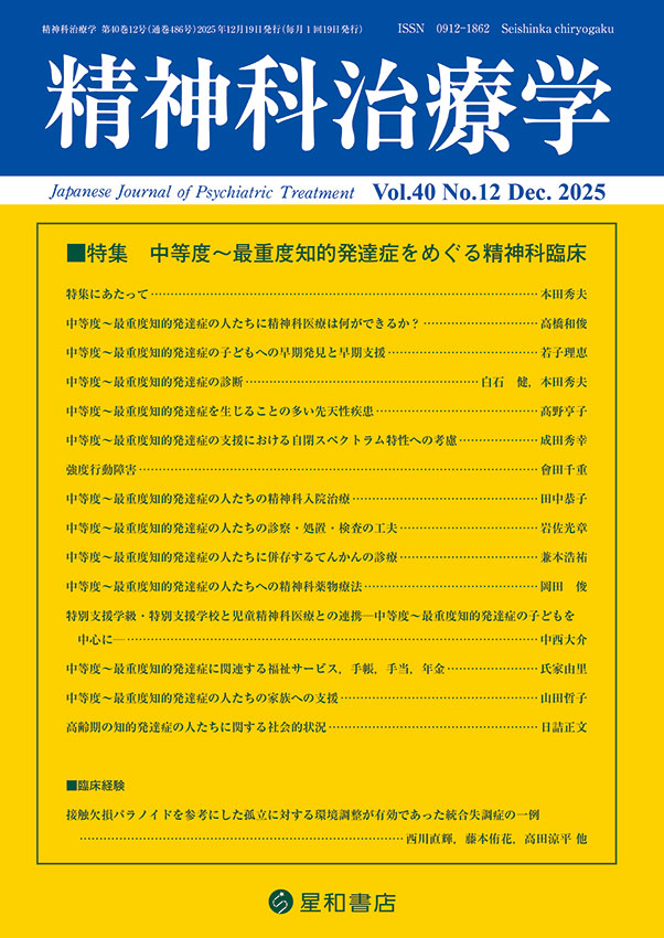 《今月の特集:中等度〜最重度知的発達症をめぐる精神科臨床》