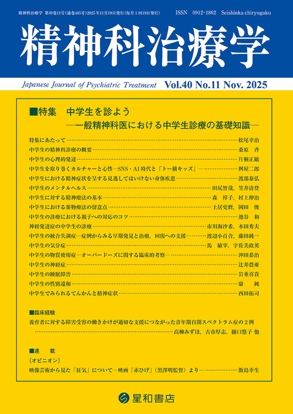 《今月の特集:中学生を診よう─一般精神科医における中学生診療の基礎知識─》