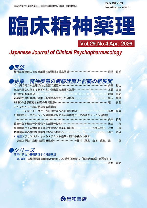 《今月の特集:精神疾患の病態理解と創薬の新展開》